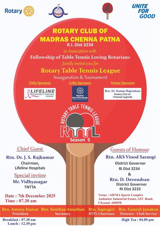 RC Madras Chenna Patna RI DIST 3234 conducted a Rotary Table Tennis. . .
